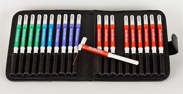 本製品は、Semmes Weinstein(セムズ・ワインスタイン)モノフィラメントをベースにした20本セットのVon Freyフィラメントです。研究者が手軽にポケットに入れて持ち運べるよう、フィラメントを保護する格納式デザインを新たに採用しました。