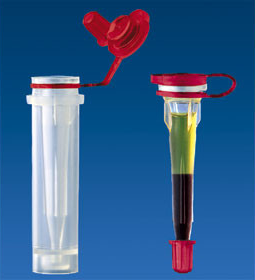 キャピラリーチューブはプッシュキャップ付きのキャリアチューブに収納されており、輸送および遠心分離にそのまま対応します。